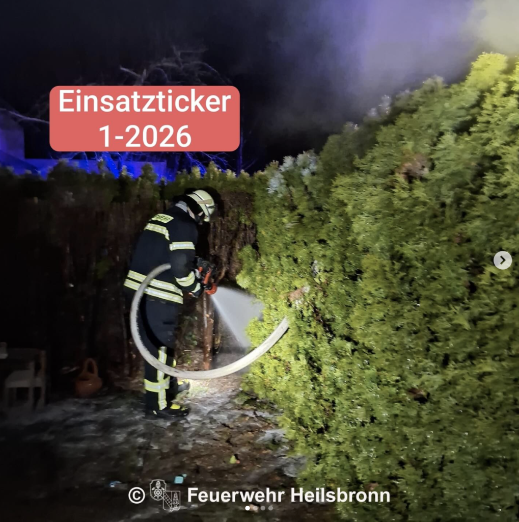 Ungefähr sechs Meter Hecke im unteren Bereich hatten an einem Privatgrundstück, durch Feuerwerkskörper ausgelöst, gebrannt. Glücklicherweise konnte das Feuer durch Anwohner mit mehreren Handfeuerlöschern unter Kontrolle gebracht werden.