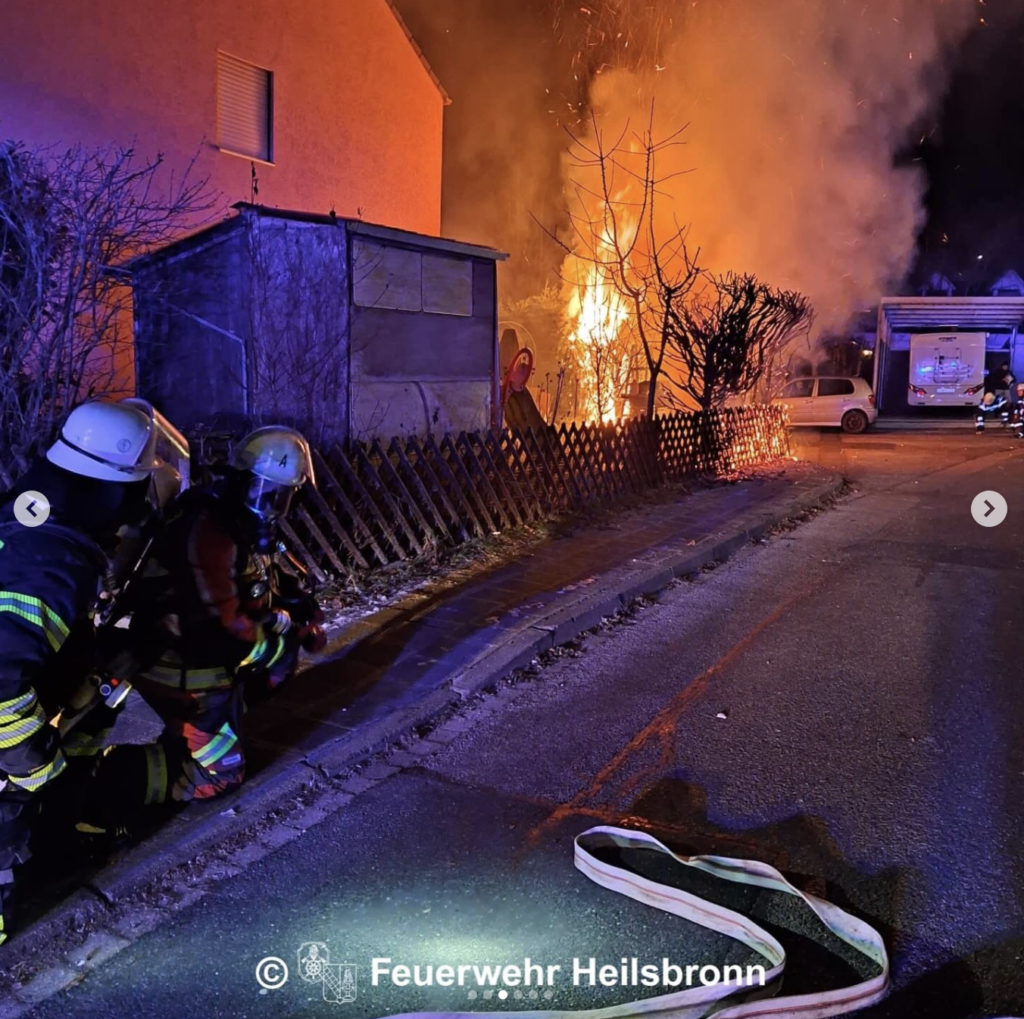 Nach dem Eintreffen der Hausbewohner kontrollierten wir das Innere des Hauses, wobei im Dachgeschoss eine leichte Verrauchung festgestellt wurde, welche durch Lüften schnell beseitigt war. Ein Gebäudeschaden sowie Schaden am geparkten PKW und Schuppen konnte verhindert werden. Ausgelöst wurde der Brand vermutlich durch eine abgestellte Feuerwerksbatterie. Nachdem die Einsatzstelle der Polizei übergeben wurde, konnten wir gegen 02:00 Uhr einrücken und die Einsatzbereitschaft wieder herstellen.
