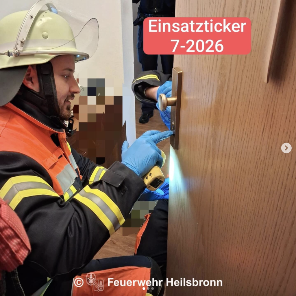 Notfalltüröffnung – am 03.01.2026 alarmierte uns die Leitstelle um 15:04 Uhr zu einer akuten Türöffnung in einem Mehrfamilienhaus im Heilsbronner Stadtgebiet. Ein 2-jähriges Kind sperrte ihre Mutter aus der Wohnung aus, konnte aber nicht mehr die Türe öffnen und im eingeschalteten Backofen befand sich das Essen.