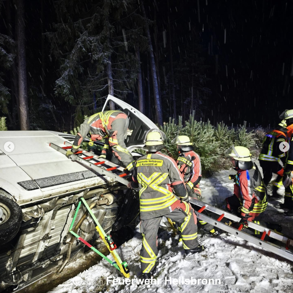 Verkehrsunfall Person eingeklemmt – die winterlichen Straßenverhältnisse führten am 10.01.2026 um 17:02 zu einer Alarmierung unserer Wehr zu einem Verkehrsunfall mit eingeklemmter Person am „Kupfer“-Kreisverkehr auf der Staatsstraße St 2410. Die Besatzung eines vorbeikommenden Rettungswagens bemerkte den Verkehrsunfall und alarmierte weitere Kräfte nach.