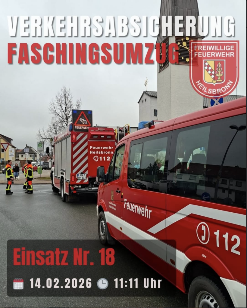 Verkehrsabsicherung – Für den Heilsbronner Faschingszug am 14.02.2026 übernahmen wir die Verkehrsabsicherung und kurzzeitige Straßensperrungen.