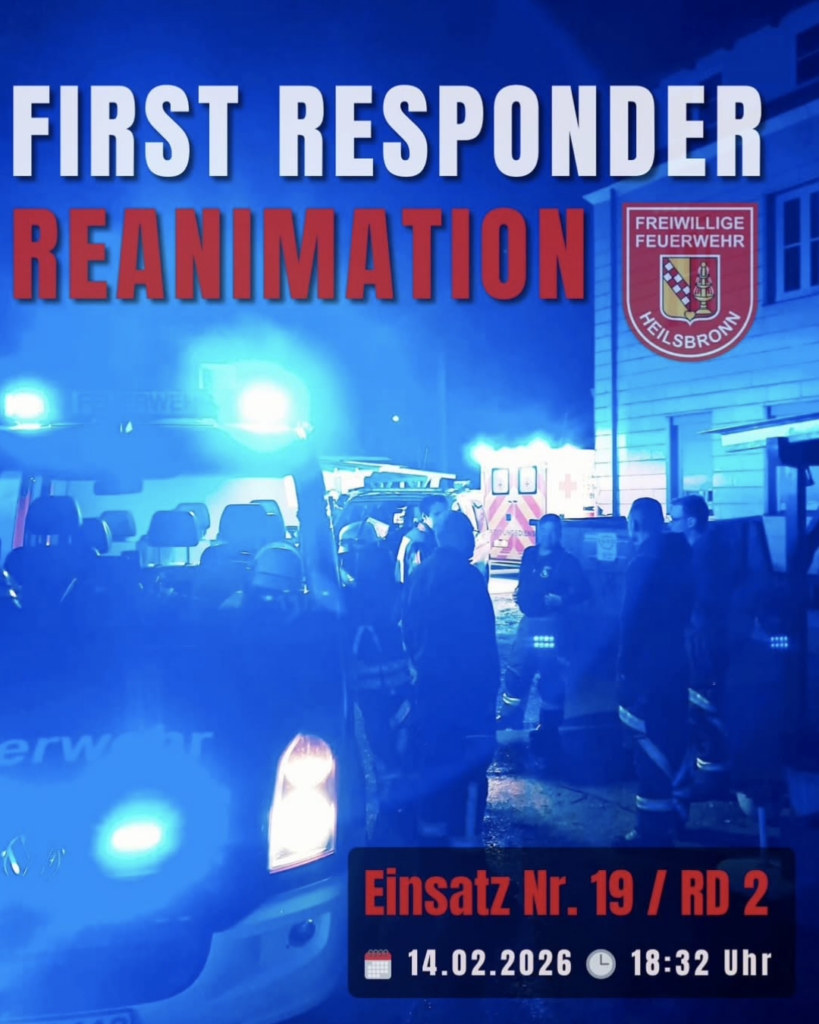 First Responder Reanimation – am 11.02.2026 alarmierte uns die Leitstelle als Erstversorger zu einem medizinischen Notfall aufgrund einer leblosen Person in einem Wohnhaus im Heilsbronner Stadtgebiet.