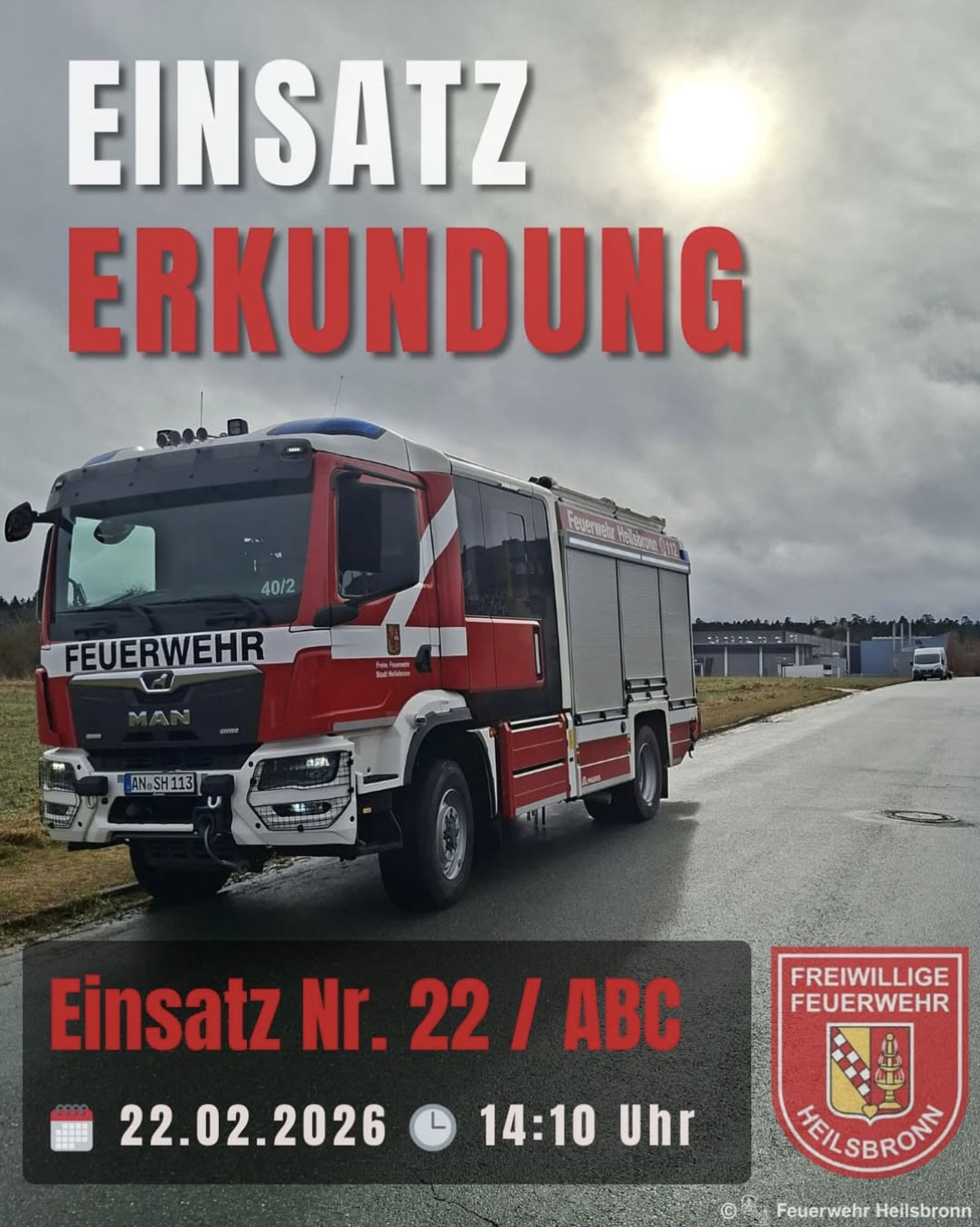 Erkundung – die Leitstelle alarmierte uns telefonisch am 22.02.2026 gegen 14:10 Uhr zu einen Erkundungseinsatz in die Adlerstraße in Heilsbronn. Besorgte Bürger hatten einen Knall und weißen Rauch aus einem Regeneinlauf festgestellt.