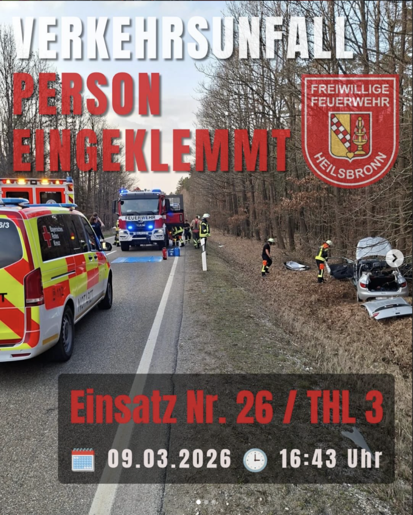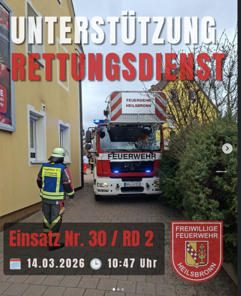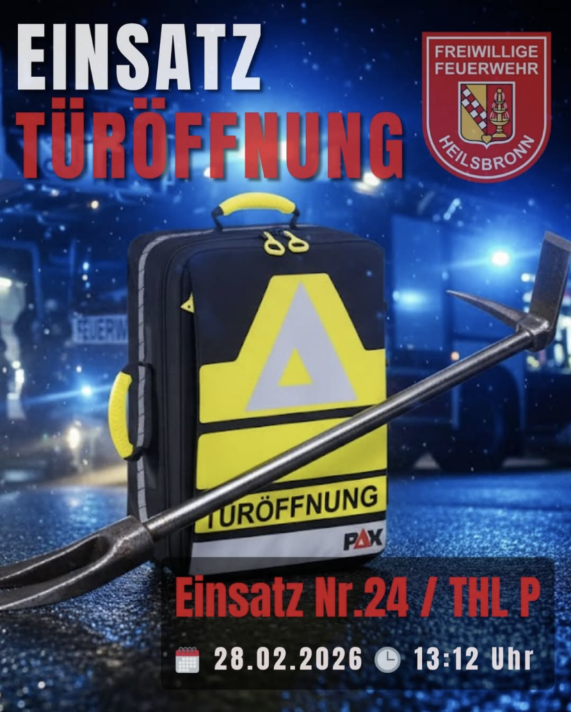 Notfalltüröffnung – zu einer akuten Türöffnung in einem Wohnhaus im östlichen Heilsbronner Stadtgebiet alarmierte uns die Leitstelle am 28.02.2026 um 13:12 Uhr. Es wurde bei der Bewohnerin der betroffenen Wohnung ein Unglücksfall vermutet.