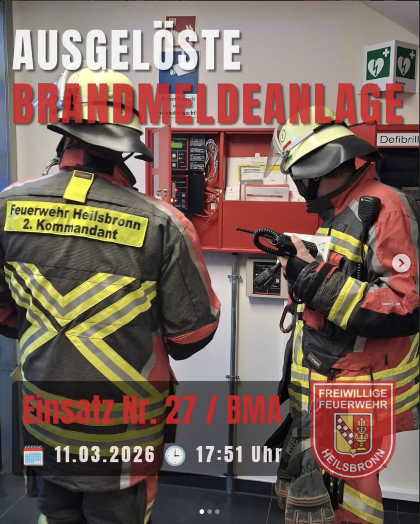 Brandmeldeanlage – zu einer ausgelösten Brandmeldeanlage in einem Industriebetrieb im östlichen Heilsbronner Stadtgebiet wurden wir am 11.03.2026 um 17:50 Uhr alarmiert.