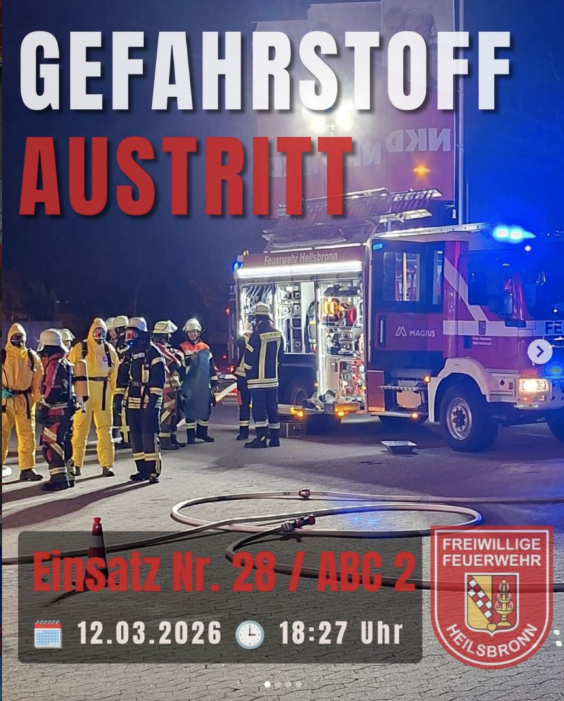Gefahrstoffaustritt – am 12.03.2026 um 18:27 Uhr wurden wir zusammen mit dem Fachberater Gefahrgut Landkreis Ansbach zum Austritt einer undefinierbaren Flüssigkeit in einem Bekleidungsgeschäft in Heilsbronn alarmiert.
